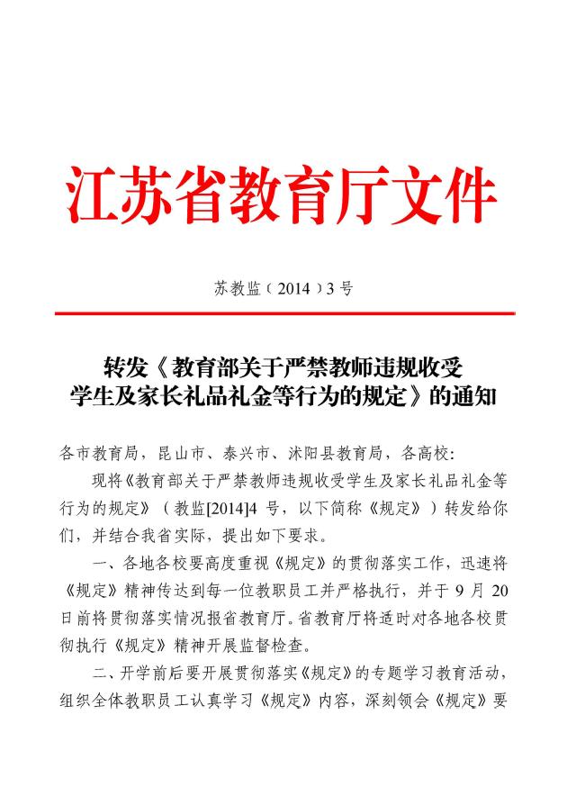 转发《教育部关于严禁教师违规收受学生及家长礼品礼金等行为的规定》的通知