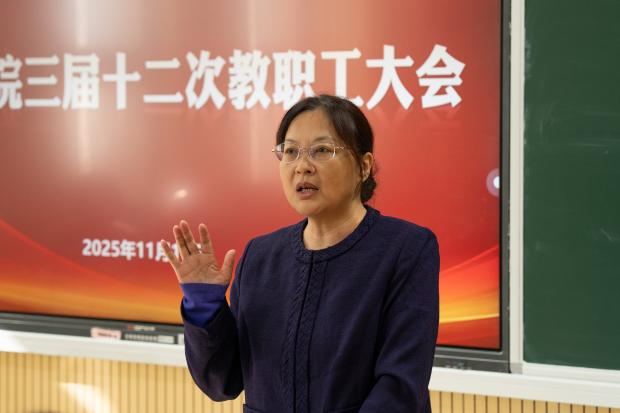 卢一亭副书记就学生工作作专题通报。她结合数据分析当前学生思想动态、就业升学现状及成长发展需求,提出构建“专业教师+学工队伍”协同育人机制,在学业指导、学科竞赛、创新创业、心理关怀等方面形成育人合力,精准对接学生成长需求,全面提升人才培养实效。